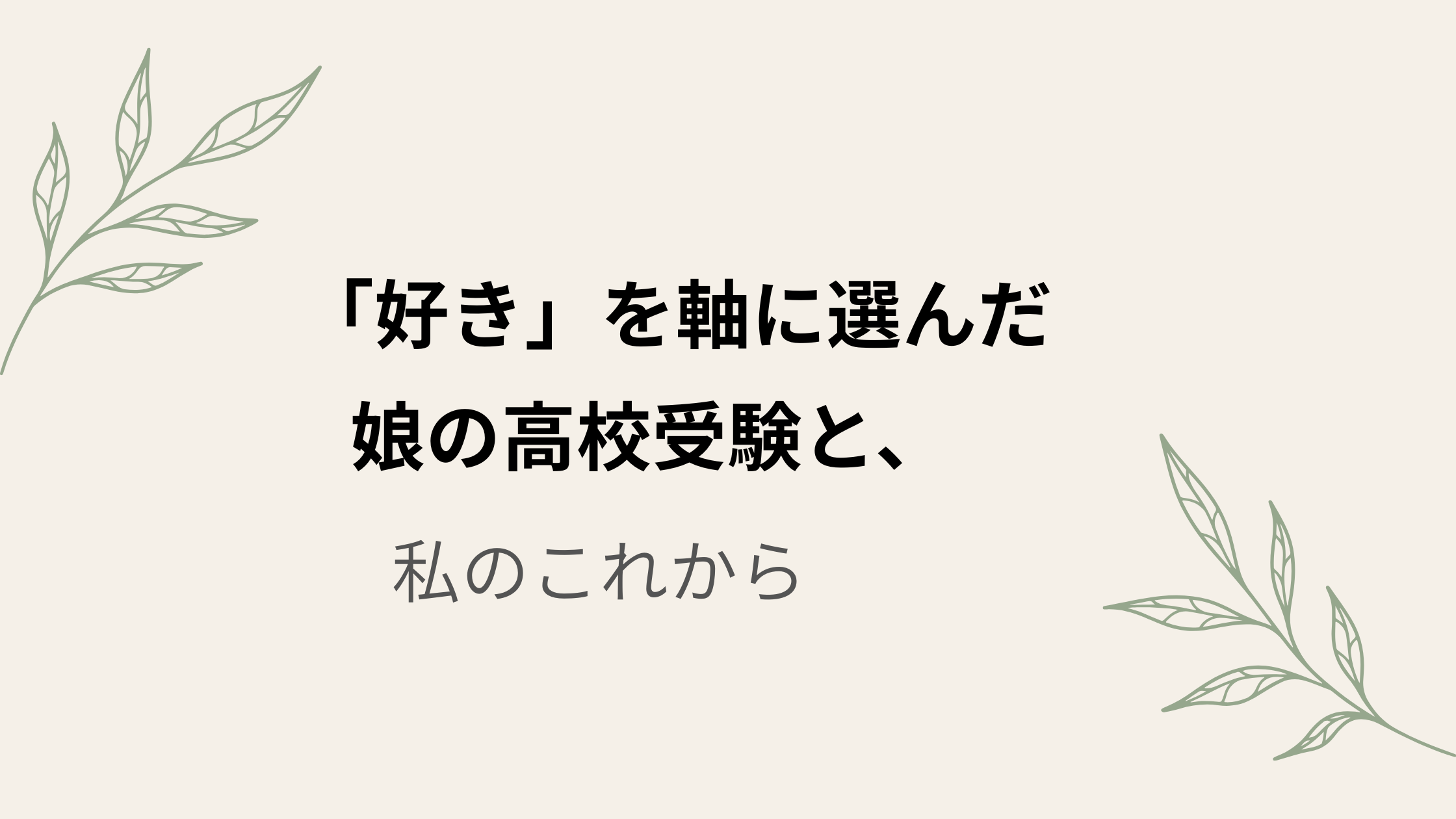 「好き」を軸に選んだ娘の高校生活と、私のこれから